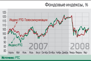 Вместе с тем российская экономика более привлекательна, чем американская. Отток средств с фондового рынка привел к их перетоку на сырьевые биржи, в частности нефтяную. В результате цена барреля нефти превысила $100, что поддержало котировки компаний топливно-энергетического сектора. С февраля на графиках общего индекса РТС и специализированного индекса «РТС-Телекоммуникации» видна дивергенция: пока телекоммуникационные фишки остаются во власти «медведей» (трейдеров, играющих на понижение. – Прим. ред.), рынок растет, подогреваемый нефтедолларами.
