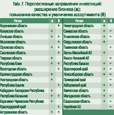 На основании проведенных расчетов можно сделать заключение о перспективном направлении инвестирования средств. Существенное превышение фактической телефонной плотности над расчетной предполагает активизацию усилий операторов не в сторону расширения рынка, а в направлении повышения качества услуг. И наоборот. По итогам расчетов перспективные направления инвестирования капитала среди региональных операторов распределились следующим образом (табл. 7).