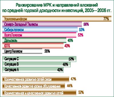 Ранжирование предприятий электросвязи по ожидаемому уровню отдачи инвестиций дает представление о наиболее перспективных регионах и видах вложений (рисунок).