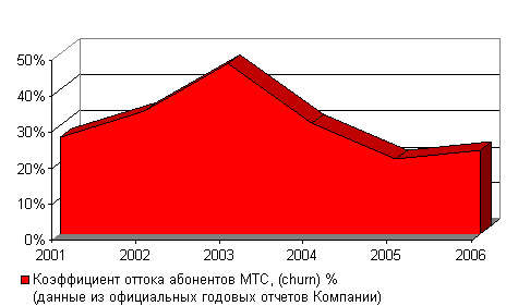 В качестве практического примера внедрения системы сохранения клиентов, хотелось бы отметить ОАО «Мобильные ТелеСистемы», деятельность которой в данном направлении была начата в середине 2004 г. и была вызвана негативной динамикой увеличения оттока действующих клиентов на протяжении 2001 – 2003 гг. Разработка и внедрение технологий и механизмов сохранения действующих клиентов, которая осуществлялась в МТС, дала свое позитивное отражение в изменении направления тренда (снижение уровня оттока).