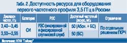 WB-2005. Широта тематики конференции позволила рассмотреть различные технологии беспроводной связи: Wi-Fi, WiMAX и UWB (для каждой – отдельное секционное заседание), а также вопросы стандартизации, интеграции и конвергенции беспроводных, проводных и мобильных (вплоть до 3G) технологий. Наибольший интерес и живейшее обсуждение вызвали сообщения представителей НПФ «Гейзер» о проблемах и перспективах использования частотного ресурса для WiMAX-сетей в РФ и НИИ радио о возможности использования диапазона 5 – 6 ГГц (табл. 2). Единственное выступление BWA-оператора касалось, как выяснилось, не действующей BWA-сети, а лишь планируемой к развертыванию. Отдельная секция была посвящена интеллектуальным платформам и приложениям на базе широкополосных технологий. Завершил конференцию круглый стол, на котором обсуждались ближайшие перспективы использования оборудования WiMAX в окружении таких конкурирующих технологий, как EV-DO, EDGE, Wi-Fi. Участники стола сошлись во мнении, что «столкнуть лбами» 3G и WiMAX не удастся. Технологии будут дополнять друг друга, особенно с учетом того, что в течение ближайших 2 – 3 лет могут появиться и многомодовые терминалы (3G/WiMAX/Wi-Fi), а «для пользователя главное – не технология, которую он использует, а сервисы, которые он получает». Представители Alcatel полагают, что такие терминалы станут доступными в 2008 г.