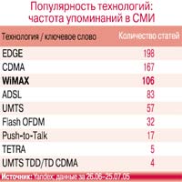 Пока WiMAX Forum и его лидер Intel успешнее всего решают лишь последнюю задачу – обеспечение максимальной известности, создание технологического бренда. Приведенные выше цифры о количестве публикаций, посвященных технологии, – наглядный тому пример. Сейчас, еще до реального старта технологии WiMAX (и, пожалуй, даже год назад), никого уже не интересует просто беспроводной широкополосный доступ – всем подавай именно WiMAX. Операторы спрашивают о WiMAX-оборудовании у производителей, корпоративные клиенты – у операторов. Температура на рынке повышается.