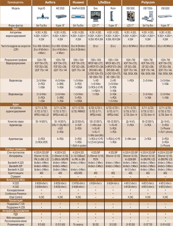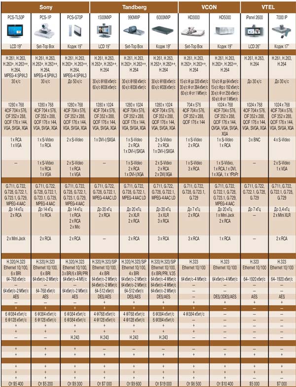 Характеристики терминального оборудования видеоконференцсвязи