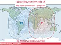 BGAN, которая строится на базе существующих и вновь вводимых ресурсов компании Inmarsat, будет состоять из трех КА четвертого поколения – Inmarsat-4 (I4), работающих в L-диапазоне (1,5/1,6 ГГц): I4 F1 (64Е) введен в коммерческую эксплуатацию в августе 2005 г.; I4 F2 (53Е) запущен в ноябре 2005 г. Оба спутника обеспечат покрытие примерно 85% земной поверхности. Для глобального охвата в 2006 г. в точку 178Е будет запущен I4 F3. При разработке ретранслятора использовалась технология перераспределения частот (bentpipe). Спутник I4 (платформа EADS) – самый тяжелый коммерческий КА связи (5,94 т).