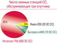 – Сеть спутниковой связи Банка России (ССС ЦБ РФ) использует ресурсы трех спутников: «Экспресс-АМ3» (140Е, 70 VSAT-станций), «Ямал-200» (90Е, 30 VSAT) и Intelsat-704 (66Е, 682 VSAT), а для подвижной связи – сервисы Inmarsat. Выбор спутников определяли современная платформа, хорошая энергетика в зоне обслуживания, доступность ресурса и надежность связи. Ведь речь идет о бесперебойном функционировании платежной системы страны. Эти КА предоставляют для ССС ЦБ РФ частотно-энергетический ресурс в диапазонах 14/11 ГГц (Ku) и 6/4 ГГц (С). У Банка России претензий к его качеству и доступности нет. Конечно, используемый нами спутниковый ресурс не идеален. Но переход на другие КА связан с большими затратами на переналадку VSAT и временными потерями. Определяющим фактором для смены КА будет возможность компенсации этих потерь.