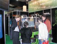 Вместе с тем CSTB стала все больше напоминать NAT, тем более что значительно сократилось число участников, относящихся к рынку терминалов спутниковой связи (их стенды можно было найти разве что с большим трудом). Другая при мета – активное участие известных системных интеграторов ( AMT Груп, Открытые Технологии, Telco и др.) – указывает на усиление на рынке ТВ сетевой мультисервисности. Новое объединение компаний под торговой маркой Российские мультисервисные системы (RMS) , объединившее в 2005 г. новосибирскую Русскую телефонную компанию, московские Оптимальные коммуникации и саратовский Интертелком, наряду с предложением по строительству МСС вывело в свет и свою новинку – первый в России оптический ТВ передатчик для головной станции, работающий в диапазоне 47870 МГц по одномодовому волокну на длине волны DFBлазера – 1550 нм. Спутниковая малочисленность несколько искупалась представительностью. На выставке присутствовали практически все ведущие операторы спутниковой связи: ГПКС,