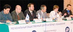 Многие говорили об отсутствии внятной политики администраций регионов в отношении Интернета, надеясь, впрочем, на ее поддержку. Хотя печальный опыт «Электронной России», которая для малых городов и поселков осталась «бумажной», заставляет сомневаться и в отношении господдержки. Вряд ли удастся дотянуть Интернет до каждой школы, как обещано в национальном образовательном проекте, считает представитель Красноярска, так как нет инфраструктуры и при существующих затратах и условиях создания радиосетей в труднодоступных регионах Интернет там появится очень не скоро.