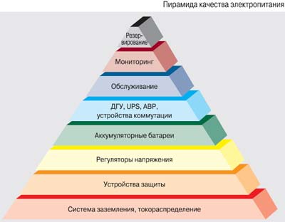 Рассмотрим каждую составляющую СЭП в порядке возрастания важности, изобразив их для наглядности в виде «пирамиды качества электропитания».
