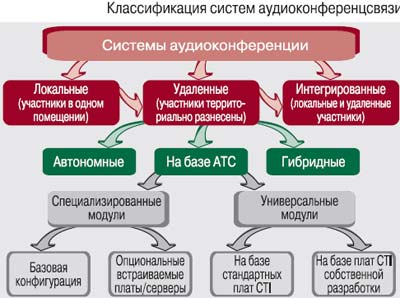 Рассмотрим подробно системы аудиоконференцсвязи с удаленными участниками, поскольку, обладая наиболее широкими возможностями по организации АКС, именно они приносят реальную экономическую отдачу при внедрении. В зависимости от способа подключения к АТС эти системы можно разделить на три класса: на базе АТС, автономные и гибридные.