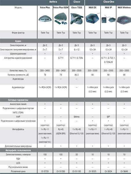Конференц-телефон Cisco 7936 создан «по мотивам» терминалов Polycom. Его единственное отличие – поддержка протокола Skinny и, соответственно, совместимость с популярной IP-PBX Cisco CallManager. В остальном же характеристики Cisco 7936 аналогичны параметрам моделей Polycom IP3000/IP4000, включая стоимость (по Cisco Global Price List все равно никто не торгует).