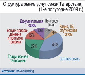 Безусловный лидер телеком-рынка Татарстана – традиционный оператор ОАО «Таттелеком» (30% рынка). Особенно сильны его позиции в сегменте проводной связи (фиксированная телефония и доступ в Интернет). Абонентская база «Таттелекома» – 812 тыс. телефонных абонентов и 115 тыс. абонентов интернет-доступа по технологии ADSL (ТМ «Летай»). В конце 2008 г. «Таттелеком» первым из российских операторов завершил цифровизацию сетей связи в сельской местности. В планах компании на 2010 г. – развитие услуг на NGN-сети (IPTV, IP-телефония), расширение предложений по контентному наполнению сети.Конкуренцию «Таттелекому» составляют многочисленные альтернативные операторы, крупнейший из которых – «Телерадиокомпания ТВТ», единственный оператор, предлагающий сегодня услугу цифрового кабельного ТВ. По итогам 1-го полугодия 2009 г. у компании 553 тыс. абонентов (42% домохозяйств) в 15 населенных пунктах республики. Кроме того, ТВТ – один из ведущих операторов республики на рынках доступа в Интернет (предоставляет услуги в 7 городах) и фиксированной телефонии (в 3 городах).
