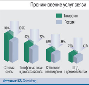 По объему промышленного производства Татарстан входит в первую десятку регионов страны. Этим республика во многом обязана отрасли ИКТ. Создана 100%-ная цифровая инфокоммуникационная инфраструктура, большинство показателей превышают средние по России: проникновение сотовой связи – на 13%, ШПД – на 10%, охват населения кабельным ТВ – на 14%...