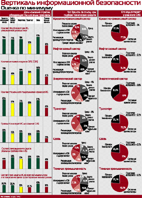 Итак, подведем скромные итоги, не претендуя на их неоспоримость, поскольку и точных данных о ведомственных СИБ невозможно получить, и четких критериев оценки реальной защищенности или развитости СИБ нет. На текущий момент вырисовывается двойка лидеров: Федеральная таможенная служба и РАО ЕЭС. За ними следуют середнячки: ФНС, Пенсионный фонд, телекоммуникации, РАО «РЖД», нефтегазовая отрасль. И уж совсем в хвосте плетутся МВД, Федеральная служба земельного кадастра и все те, кто задачи по защите информации решает с помощью оргмер.
