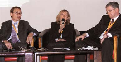 Посвященный широкополосным технологиям, этот день оказался целиком «зарубежным». Ожидавшихся выступлений «Комкора-ТВ» и «Энфорты» не случилось. Зато участников ознакомили с международным рынком VoIP (iBasis), с сервисами успешно действующей уже более года в Австрии, Словакии и Хорватии сети WiMAX (фиксированная связь; 3,5 ГГц), а также с возможностями получения дополнительных прибылей за счет интерактивных видеосервисов – от веб-телевещания до IPTV (Detecon). Однако для реального WiMAX (диапазон 3,5 ГГц) у нашего регулятора частот не предусмотрено, а интерактивное видео с IPTV только «прощупывают» рынок.