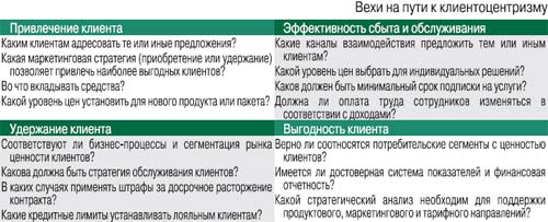 Многие годы операторы говорили об ориентации на клиента, однако часто вся организация их деятельности – от разработки продуктов, продаж и маркетинга до биллинга и абонентского обслуживания – продолжала строиться вокруг продуктов. Теперь же, чтобы добиться лояльности клиентов, операторы вместо продажи одного продукта многим должны предлагать пакеты услуг каждому потребителю индивидуально и заботиться, чтобы его потребности удовлетворялись в течение всего времени, пока он остается клиентом.Исследования показывают, что привлечение нового клиента обходится в несколько раз дороже, чем продажа дополнительных продуктов существующему, и что потребители, покупающие пакет продуктов, более лояльны к их поставщику. Таким образом, компании, продающие более комплексные решения кругу все более лояльных клиентов, создают своего рода спираль удачи, способствующую росту доходов и в конечном счете – повышению стоимости акций. Поэтому основной задачей операторов должна стать ориентация на клиента, так называемый клиентоцентризм.