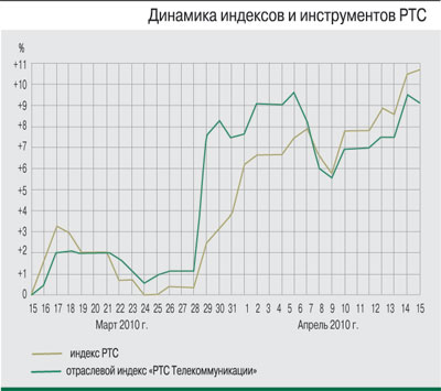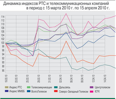 За этот период индекс ММВБ прибавил 8,14% – до отметки 1530,93 пункта, а индекс РТС увеличил капитализацию на 9,22%, достигнув уровня 1676,27 пункта. Отраслевые телекоммуникационные индексы в целом демонстрировали динамику на уровне «широкого рынка»: «ММВБ телекоммуникации» (MICEX TLC) за месяц вырос на 8,5% (до 2215,58 пункта), «РТС Телекоммуникации» (RTStl) подорожал на 9,66% (до 234,17 пункта).Информационный фон в телекоммуникационном секторе по-прежнему формировал преимущественно «Связьинвест», находящийся в процессе реорганизации. В марте холдинг определил цены выкупа акций у несогласных с реформой миноритариев МРК: обыкновенные и привилегированные акции МРК будут выкупаться по одной цене. Дисконт цен, по которым будет вестись выкуп, к ценам конвертации составит 28,5% для обыкновенных акций и 9% для привилегированных. В числе новостей, которые повлияли на динамику котировок акций операторов, следует выделить публикацию практически всеми компаниями сектора финансовых итогов по РСБУ за 2009 г.