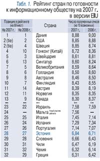 В первую тройку также вышли Швеция и Сингапур. Первая за 2006 г. поднялась сразу на шесть позиций вверх, став одной из стран с самым быстрорастущим ИКТ-сектором экономики. Сингапур, хотя и опустился на одну позицию, по-прежнему демонстрирует высокий уровень проникновения информационных технологий. Кроме того, эксперты отмечают в этой стране весьма благоприятный климат для привлечения частного капитала в сектор ИКТ. Вместе с ними в первой десятке оказались Финляндия, Швейцария, Нидерланды, США, Исландия, Великобритания и Норвегия.