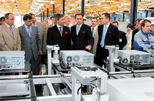 Завод Kraftway стал первым предприятием кластера ИТ в рамках создаваемого в Обнинске технопарка площадью 70 тыс. кв. м, в развитие которого должно быть вложено 8,6 млрд руб. государственных и 9,1 млрд руб. частных средств. Инвестиции российского бизнеса в реальный сектор экономики придают дополнительный импульс развитию Калужской области. Новый завод – это 420 рабочих мест со средней заработной платой 15 тыс. руб., приток налоговых платежей в местный бюджет, сотрудничество с Обнинским госуниверситетом атомной энергетики и т.д. На открытии нового завода все было как положено: военный оркестр, приветственные речи, красная ленточка – даже погода не подвела. Праздничное настроение не мешало рабочему процессу: конвейер не останавливали, даже когда проводили экскурсию для Л.Д. Реймана. Министру рассказали, что технологию разрабатывали сами, стараясь предусмотреть возможность масштабировать производство под перспективные разработки. Пока производственные мощности, задействованные лишь на треть, представляют собой две универсальные конвейерные линии для выпуска больших объемов однотипной продукции и стапельно-конвейерную линию с элементами роботизации для выпуска разнородной готовой продукции – оборудование от Flexlink обошлось компании в -4 млн. Все движущиеся паллеты оборудованы радиочастотными идентификационными метками для точного определения положения изделия на конвейере и состояния его готовности в любой момент времени; управление – с помощью АСУ ТП опять же собственной разработки; в зоне тестирования – лазерное позиционирование паллеты с ПК. Внедряется специально разработанное российскими программистами тестовое ПО. Рассматривается возможность производства других компонентов, в частности мониторов.