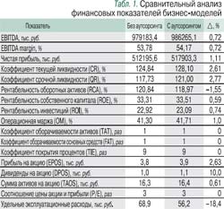 Для описанной выше бизнес-модели аутсорсинга проводилось компьютерное моделирование деятельности сотовой компании в системе Project Expert. Прогнозируемые на 2007–2008 гг. расходы на техническую эксплуатацию сети составили соответственно 28459,1 тыс. и 31088,21 тыс. руб. Сравнительный анализ бизнес-моделей деятельности этого оператора на 2008 г. с аутсорсингом и без него показывает (табл. 1) предпочтительность бизнес-модели с аутсорсингом технической эксплуатации сети.
