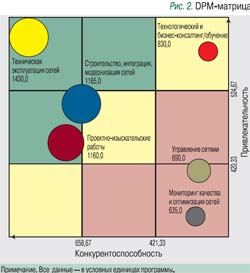 Данные экспертных оценок каждого сегмента вводились в систему маркетингового анализа Marketing Analytic. В итоге была построена DPM-матрица, представленная на рис. 2, где диаметр кружка, изображающего сегмент рынка, соответствует опыту компании.