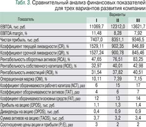 при аутсорсинге в системе Project Expert позволило спрогнозировать ее развитие на ближайшую перспективу. В частности, сравнительный анализ трех альтернативных путей развития компании в 2008 г. – с учетом только существующих бизнес-направлений (вариант I), а также с добавленным направлением «Техническая эксплуатация операторских сетей» при обслуживании двух (вариант II) и трех (вариант III) операторских сетей – показал предпочтительность последнего варианта, который позволит компании достичь стратегических целей (табл. 3).