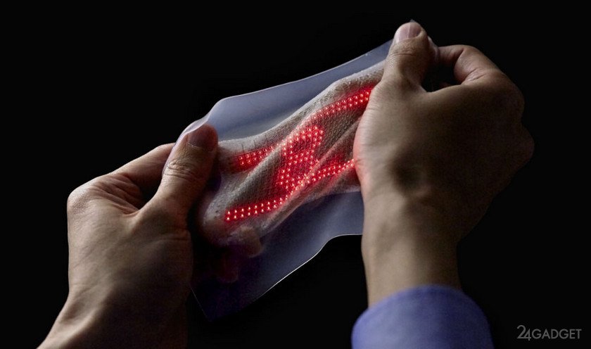Технологию изготовления «умной» кожи разработала крупная японская полиграфическая компания Dai Nippon Printing, известная тем, что, кроме газет и журналов, типографским способом производит компоненты для компьютерных и ЖК-дисплеев, а кроме того развивает биомедицинские технологии – печатает слои клеток для регенеративной медицины. На ее предприятиях матрица из микросветодиодов 16х24 и гибкая, способная растягиваться проводка наносятся на резиновую подложку «электронной кожи». Кстати, за счет такой гибкости компонентов и всей структуры материала система может значительно меняться в размерах, увеличиваясь до 45%, и потому ее ношение не вызывает никакого дискомфорта.