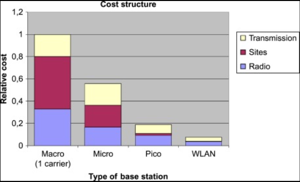 Рис. 2. Структура относительной стоимости различных типов базовых станций