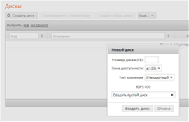 Рис. 1. Возможность выбрать диск с нужными параметрами производительности через консоль управления облаком КРОК