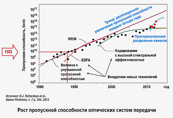 К настоящему времени объем производства интегральных оптических модулей уже превышает объем оптических модулей, разработанных и изготовленных из дискретных компонентов, а рост рынка, определяемого развитием и потребностями дата-центров, приводит к падению их стоимости на 10--20% ежегодно при кратном уменьшении размеров и энергопотребления.