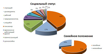 руководители (42 и 17% соответственно), семейные люди (71%) с высшим