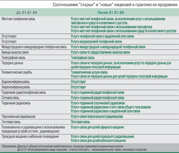 Множество вопросов возникает из-за с соотношения наименований услуг связи, внесенных в лицензии, выданные до 1 января 2004 г. и после этой даты. Между тем официальных разъяснений по вопросу соотношения наименований «старых» и «новых» лицензий до сих пор нет. Отсюда проблема применения новых норм к старым лицензиям.