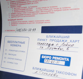 Техосмотр показал – работает. Но позвонить на него по указанному в кабинке номеру не удалось. Впрочем, чтобы купить таксофонную карту, надо отправиться за две остановки по железной дороге в город Лобня. Вопрос: зачем тратить пять с лишним тысяч долларов на таксофон в поселке, где за каждым забором кроются пара машин и уж никак не меньше трех-четырех мобильников?
