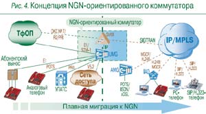 Плавность миграции к NGN обеспечивается разбиением процесса модернизации на несколько этапов. На первом этапе должны быть решены две главные задачи – обеспечение совместимости устанавливаемого оборудования с существующей сетью и возможности плавного перехода к полноценной NGN с сохранением существующих ресурсов.