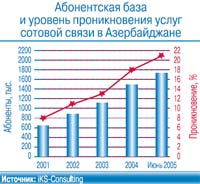Рынок сотовой связи Азербайджана достаточно развит по сравнению с большинством стран СНГ. Несколько лет назад республика занимала третье место (после России и Украины) по уровню проникновения услуг мобильной связи среди стран СНГ, однако недостаточно жесткая конкуренция среди операторов привела к ослаблению позиций страны. В настоящее время сотовыми услугами пользуется здесь 21% населения. Рост абонентской базы в 2004 г. составил около 35%, а в первом полугодии 2005 г. – 16%. В Азербайджане действуют 3 сотовых оператора, два из которых работают в стандарте GSM и в совокупности обслуживают более 99% абонентов.