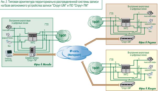 Представим себе следующую ситуацию. Существует центральный офис корпорации – он находится в Москве. Помещения этого офиса распределены по трем этажам одного из деловых центров. Корпорация имеет филиалы в Мурманске, Хабаровске, Владивостоке и Новосибирске. Столичное руководство ставит задачу – организовать контроль всех внешних телефонных линий корпорации, чтобы предотвратить утечку конфиденциальной информации и иметь возможность оценивать качество работы сотрудников. Стандартное решение данной задачи – установить во всех филиалах и на всех этажах московской штаб-квартиры системы автоматической записи телефонных переговоров. Такая система обеспечивает запись всех переговоров сотрудников филиала с внешним миром на жесткий диск компьютера, установленного в каждом представительстве.Накопленная информация определенным образом передается в центральный офис, где впоследствии и обрабатывается. Недостатки такого решения лежат на поверхности. Во-первых, необходимо установить целых семь компьютеров. В результате стоимость оборудования резко увеличивается, а надежность всей системы снижается. Во-вторых, каждый компьютер требует постоянного администрирования, а это существенные затраты времени и, как следствие, опять-таки денег. В-третьих, накопленная в филиале информация может быть прослушана администратором системы, при необходимости скорректирована (например, стерта некая нежелательная запись) и потом отправлена в центральный офис корпорации. Как следствие, оперативные возможности применения комплекса снижаются и возникают сомнения в полноте и достоверности предоставленной базы разговоров.