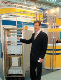 ОСТАНОВКА НА ПРОСПЕКТЕ ПРОИЗВОДИТЕЛЕЙ И ПОСТАВЩИКОВ ОБОРУДОВАНИЯ. На стенде «ИскраУралТЕЛ» демонстрировался медиапортал, который позволяет предоставлять и использовать различные сервисы для мобильных и фиксированных абонентов. Новинка в продажу еще не поступала, цены не имеет, но готовится к испытаниям на сети МВД в родном Екатеринбурге. «Программный комплекс, интегрированный в нашу станцию, и сказку приятным женским голосом на ночь по телефону почитает, и при ДТП Правила дорожного движения воспроизведет», – шутит А.В. Кузнецов из отдела продаж корпоративных сетей «ИскраУралТЕЛ». На ведомственной службе медиапортал предоставит информацию о структуре и работе предприятия, воспроизведет текст должностных инструкций, может использоваться и как система оповещения о совещании у руководства (заодно поможет отказаться или согласиться), и как сервер записи голоса, а что особенно важно – слушается голосовых команд. Еще одно мультимедийное решение на стенде по соседству представлял «Искрателингсервис» : D.E.S (Digital Entertainment Solution) ориентировано на гостиничный и туристический бизнесы и предназначено для развлечений – управления высококачественными интерактивными и мультимедийными ТВ-услугами, но может быть использовано и в здравоохранении. Еще один экспонат 2005 года рождения – малая учрежденческая АТС-160 на 160 аналоговых или 80 цифровых абонентов, 40 евро за порт (ее предшественница – SI2000 АТС 320). Установлена в МВД, имеет «защиту от дурака», на нее можно вывести пожарную и охранную сигнализацию. Отечественный разработчик и производитель «Зелакс» , чье оборудование установлено на крупнейших ведомственных сетях страны, приурочил к выставке выход на рынок нового устройства TDMoP. Шлюз MM-104 предназначен для передачи трафика TDM по сетям с коммутацией пакетов, с его помощью можно передавать одновременно до четырех потоков G.703/E1 и высокоскоростной канал Ethernet. Компаниям с территориально распределенной структурой шлюз позволяет отказаться от аренды выделенных линий E1 и при этом использовать все возможности современных АТС. Владельцам беспроводных каналов с Ethernet-окончаниями MM-104 позволяет передавать TDMтрафик с минимальными финансовыми затратами. Операторам связи новое оборудование даст возможность предоставлять высокодоходные услуги выделенных линий E1. Шлюз TDMoP MM-104 имеет встроенный четырехпортовый Ethernet-коммутатор 10/1000Base-Tx с поддержкой VLAN и в зависимости от конфигурации может быть оснащен двумя или четырьмя портами G.703/E1.