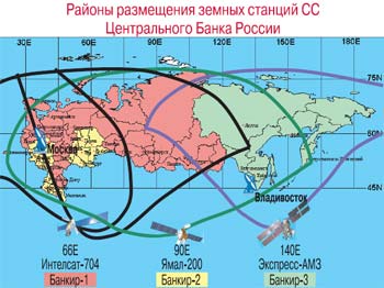 – Сеть спутниковой связи Банка России (ССС ЦБ РФ) использует ресурсы трех спутников: «Экспресс-АМ3» (140Е, 70 VSAT-станций), «Ямал-200» (90Е, 30 VSAT) и Intelsat-704 (66Е, 682 VSAT), а для подвижной связи – сервисы Inmarsat. Выбор спутников определяли современная платформа, хорошая энергетика в зоне обслуживания, доступность ресурса и надежность связи. Ведь речь идет о бесперебойном функционировании платежной системы страны. Эти КА предоставляют для ССС ЦБ РФ частотно-энергетический ресурс в диапазонах 14/11 ГГц (Ku) и 6/4 ГГц (С). У Банка России претензий к его качеству и доступности нет. Конечно, используемый нами спутниковый ресурс не идеален. Но переход на другие КА связан с большими затратами на переналадку VSAT и временными потерями. Определяющим фактором для смены КА будет возможность компенсации этих потерь.