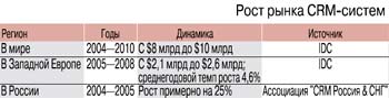 стояла американская компания Siebel Systems, основанная Томом Зибелем, выходцем из Oracle. К началу 90-х при его непосредственном участии в корпорации была разработана информационная система учета маркетинга и продаж, однако специальное подразделение для ее продвижения на рынок компания создавать не стала. Уйдя из Oracle в 1991 г., Т. Зибель провел маркетинговые исследования потребностей крупных корпораций, имеющих офисы во всем мире, в ИС, обеспечивающей оптимизацию маркетинга и продаж. Исследования подтвердили потенциальную востребованность такой системы – и в 1993 г. недавний сотрудник Oracle учредил компанию своего имени, призванную продавать новую ИС. Очень скоро бизнес Т. Зибеля набрал обороты до сотни миллионов долларов, тогда и спохватились киты рынка ПО – Oracle и SAP. Они вступили в конкуренцию с Siebel – так, собственно говоря, и появился рынок. К концу 90-х десятки софтовых компаний конкурировали на рынке CRM, объемы которого стали измеряться миллиардами долларов. Долгое время его лидером оставалась все та же Siebel Systems, однако в сентябре 2005 г. стало известно, что Oracle купила своего конкурента. Ирония судьбы? Логика бизнеса?..