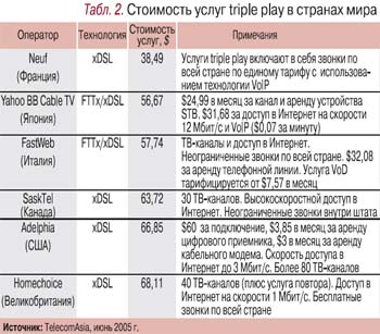 Количество пользователей услуг triple play зависит главным образом от уровня развития широкополосных сетей в стране, так как для предоставления теле- и видеоуслуг требуется канал с пропускной способностью порядка 2–6 Мбит/с. В Корее, Японии и Гонконге большинство и домашних, и корпоративных пользователей пользуется каналами с пропускной способностью не менее 10 Мбит/с. Например, у гонконгской компании PCCW, предоставляющей видео по запросу, уже 450 тыс. абонентов.