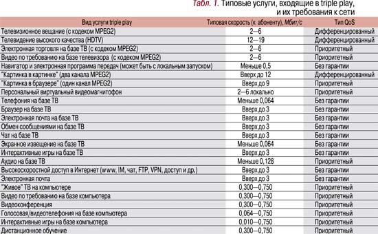 Требования услуг triple play к характеристикам широкополосной сети (табл. 1) в основном относятся к двум показателям:
