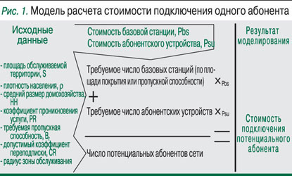 Стоимость подключения одного потенциального абонента к сети фиксированного беспроводного доступа подчиняется следующим закономерностям: