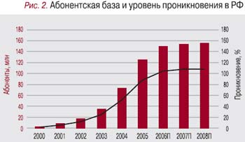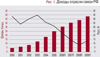 – Сегодня мы находимся на новом витке развития, для которого замедление роста неизбежно. Не поручусь за точность оценок, поскольку прогноз неофициальный, но10%ный рост вполне приемлем для зрелой отрасли, вступающей в стадию насыщения (рис. 1). Конечно, говорить о стабилизации спроса даже на традиционные услуги можно лишь условно, ибо экономика еще не приобрела достойной мощи. Отсюда и низкий платежеспособный спрос населения, и неполное информационное покрытие огромной и сложной географии России.
