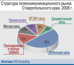 По итогам 2008 г. телекоммуникационный рынок Ставрополья превысил 14 млрд руб., пропустив вперед только более развитые рынки соседних регионов – Ростовской области и Краснодарского края.