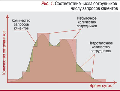 Самое первое в нашей жизни расписание появляется почти одновременно с нашим появлением на свет. Умение жить по плану нам старательно прививают родители в надежде обеспечить комфортное существование обеих сторон. Далее эстафету подхватывают школы, вузы и проч. Постепенно приходит понимание, что определенному графику подчиняется всё вокруг, начиная с движения поездов и самолетов и заканчивая программой телепередач. Но лишь немногие задумываются о том, как сложно, например, распланировать работу сотрудников предприятия в режиме, позволяющем оптимально использовать доступные ресурсы, и регулярно поддерживать актуальность таких графиков.Весьма нагляден в этом смысле пример работы кассиров в сетевом супермаркете. При наплыве покупателей недостаток операционистов ведет к образованию очередей, снижению качества обслуживания, потере клиентов, а следовательно, и прибыли. В то же время избыток кассиров, работающих в часы минимальной нагрузки, приносит убытки в чистом виде. Отсюда вывод: количество обслуживающего персонала должно соответствовать числу запросов, поступающих от клиентов (рис. 1).