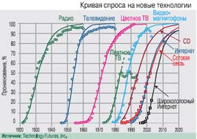 Очевидно, что столь масштабные инвестиции окупятся не ранее через 15–20 лет и только при условии эффективного маркетинга. Как показывают исследования и операционные показатели операторов фиксированной связи, потребитель еще не готов к новым сервисам, которые могут предложить IP-сети. И это закономерно. Согласно теории диффузии принятие потребителями новых технологических услуг происходит в течение 2–3 десятилетий. Например, 90% проникновения телевидения в США было достигнуто через 35 лет после изобретения телевизора, а услуге сотовой связи в Японии понадобилось для этого 25 лет (впервые она была предложена NTT в 1979 г.).