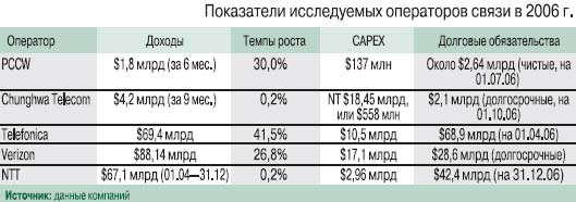 Тем не менее новые сервисы не могут пока сбалансировать продолжающееся сокращение доходов традиционных операторов. К примеру, выручка PCCW от услуг интернет-доступа и передачи данных стабилизировались в 2005–2006 гг. Причина – в снижении среднего счета на пользователя. Но число новых подключений пока еще растет (16%).
