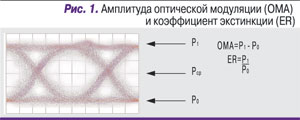 Другими ключевыми понятиями являются амплитуда оптической модуляции (OMA), представляющая собой разность максимального и минимального энергетических уровней сигнала, и коэффициент экстинкции (ER) – отношение этих уровней. Необходимо подчеркнуть, что и ОМА и ER суть относительные величины.