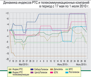 Основным событием в секторе стало принятие акционерами «Ростелекома» положительного решения по вопросу реорганизации компании. На годовом собрании акционеры одобрили присоединение к «Ростелекому» семи межрегиональных компаний «Связьинвеста» и «Дагсвязьинформа». Кроме того, за рассматриваемый период в большинстве компаний телеком-сектора были объявлены финансовые результаты по МСФО за 2009 г. и прошли годовые собрания акционеров.