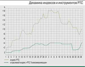 За два летних месяца, с 1 июля по 27 августа, отечественный фондовый рынок в целом продемонстрировал умеренный прирост капитализации. Причем если в июле публикации позитивной макроэкономической статистики из ЕС и США и сильная квартальная отчетность ряда крупнейших эмитентов помогли скомпенсировать понесенные на торгах в мае-июне потери, то в августе на российский рынок акций вновь вернулась коррекция. Ее причинами стали как сезонное снижение активности на фондовых площадках, так и усилившиеся опасения инвесторов относительно перспектив мировой экономики, подкрепленные противоречивыми данными об американской экономике и возможным сокращением объемов поддержки сегмента рискованных активов со стороны мировых финансовых регуляторов. Всего за рассматриваемый период индекс ММВБ прибавил 4,37%, до 1366,50 пт, а индекс РТС – 6,12%, до отметки 1421,47 пт. В то же время отраслевые индексы «ММВБ телекоммуникации» и «РТС Телекоммуникации» выросли на 4,79% (2053,88 пт) и 2,27% (205,75 пт) соответственно.