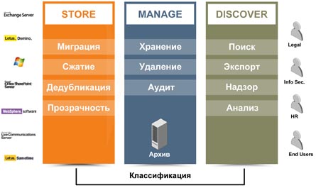 Например, тот же Enterprise Vault позволяет провести архивирование Microsoft Exchange путем переноса половины электронных сообщений в Enterprise Vault для длительного хранения, что позволяет существенно сэкономить время и затраты».